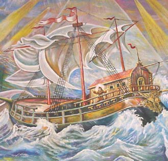 Ao lado e abaixo, detalhes das pinturas no interior do templo, retratando passagens da vida de Santo Antônio.